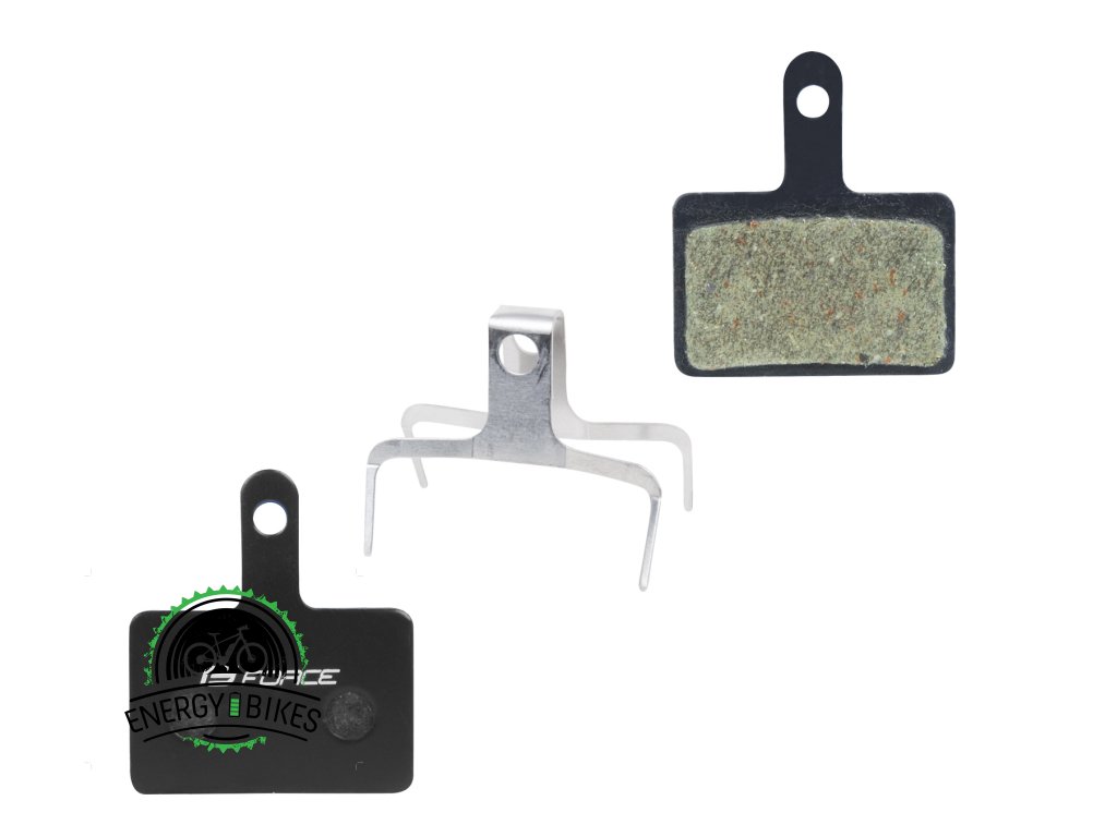 Brzdové platničky FORCE M08 náhrada SHIMANO B03S, Resin pre eBike s pružinou FE Telo platničiek je vyrobené z ocele, brzdná plocha je plymérovo/organická zmes z prímesou syntetických vlákien na báze kevlaru.