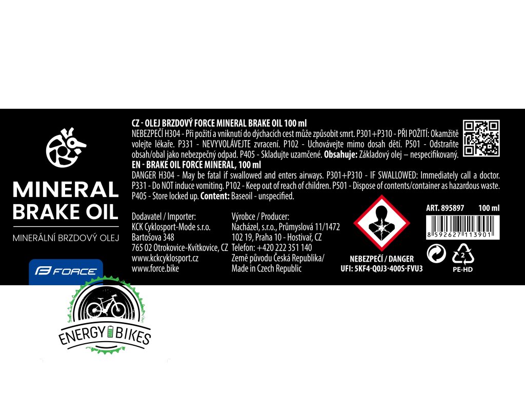 Minerálny olej FORCE do bŕzd určený pre SHIMANO/Tektro/Magura. Balenie obsahuje 100ml
